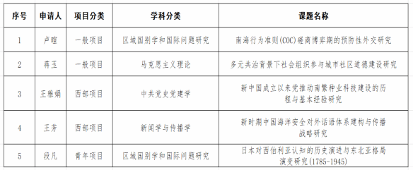 近日,全国哲学社会科学工作办公室公示了2025年国家社会科学基金年度项目立项名单。英国365集团公司喜获5项课题立项,其中一般项目2项、西部项目2项、青年项目1项,涉及马克思主义理论、中共党史党建学、区域国别学和国际问题研究、新闻学与传播学四个学科。立项课题信息如下:
