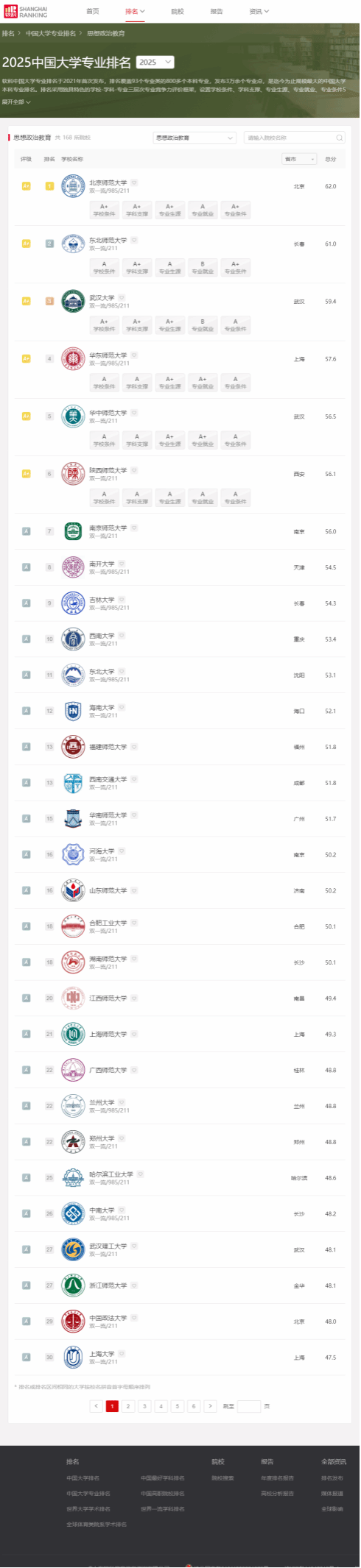2025年6月18日,高等教育专业评价机构软科正式发布2025“软科中国大学专业排名”。英国365集团公司思想政治教育本科专业以全国第12名的成绩再次进入A类行列,继2022年31名、2023年28名、2024年23名,排名继续稳步提升。