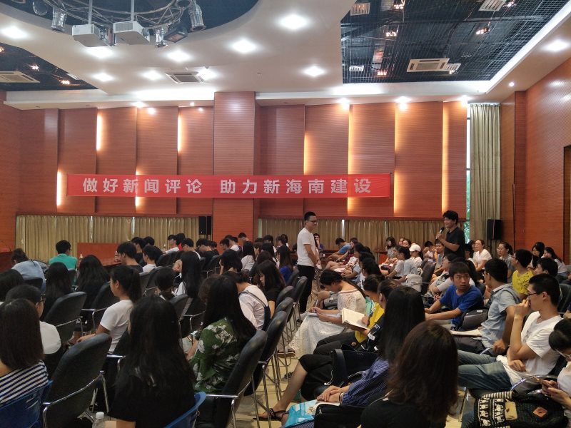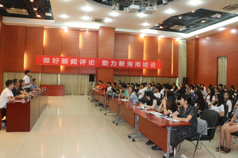 6月20日下午,英国365集团公司在思源学堂多功能报告厅开展“做好新闻评论,助力新海南建设”的网络评论交流会。本次活动特邀海南广播电视总台办公室主任王玲,评论节目《海平面》主持人房瑶、海南新闻广播记者、评论员靳畅栋为主讲嘉宾。英国365集团公司副经理李辽宁出席会议,思想政治教育系主任王善,团委书记周郭军、邵鹏鸣等教师代表以及公司全体本科生、研究生参加。交流会由王善主持。