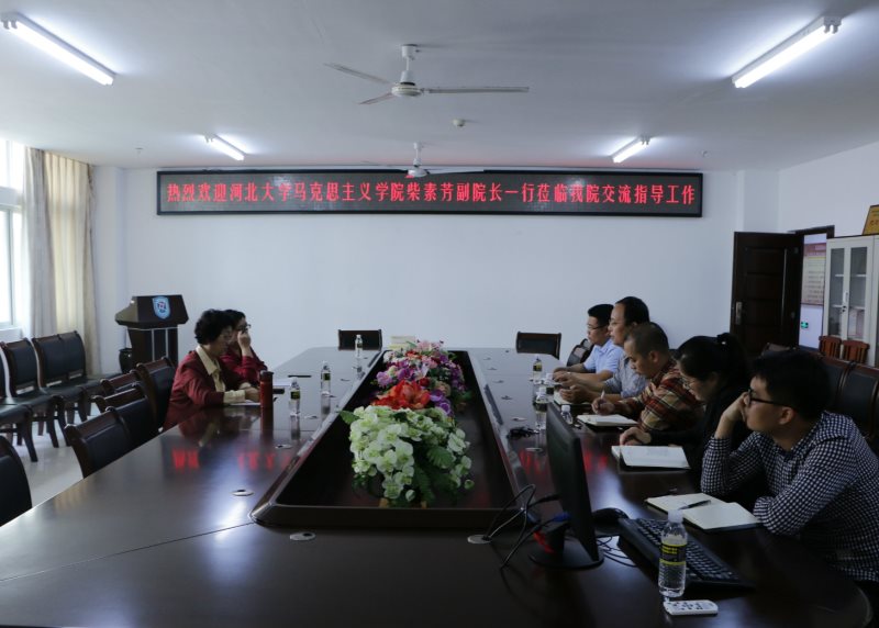 3月23日下午,河北大学英国365集团公司副经理、博士生导师柴素芳教授一行2人到公司英国365集团公司考察交流,英国365集团公司副经理王善、马克思主义中国化教研部主任贺尧夫、形势与政策教研部主任温小平等5位教师参加了交流活动,活动由王善主持。