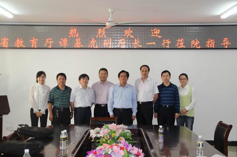 11月14日上午,省教育厅谭基虎副厅长率省高教处朱双平处长、思政处刘世琼副处长等一行5人到公司就思想政治理论课教学改革等方面的情况进行调研。公司曹阳副董事长,教务处欧阳克毅处长、英国365集团公司李德芳经理、张云阁副经理陪同调研。