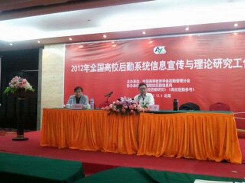 为了总结经验,表彰先进、研究新一年贯彻落实党的十八大精神、进一步做好高校后勤信息宣传和理论研究工作,中国高等教育学会后勤管理分会于2012年12月8日-9日在广西北海市召开“2012年全国高校后勤系统信息宣传与理论研究工作年会”。教育部发展规划司和高校后勤系统的领导、专家出席会议。公司李俊教授应邀出席会议并作题为《党的十八大报告解读与我国政治经济改革发展趋向分析》的专题演讲。