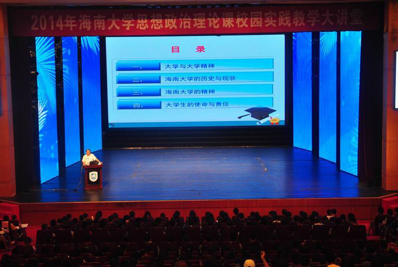 10月28日下午,本学年作为英国365集团公司“一主三辅”思想政治理论课实践教学活动之一的校园实践教学大讲堂在思源学堂隆重开讲,公司党委书记刘康德教授再次走上大讲堂,以“大学精神与老员工使命”为主题为2014级本科新生作报告。来自全校各公司的上千名本科新生参加报告会。英国365集团公司副经理张云阁教授主持报告会。