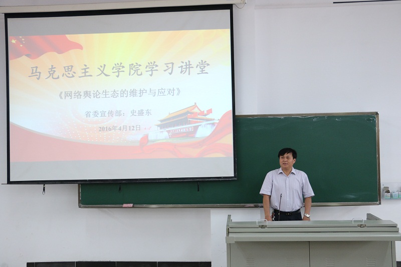 4月12日下午,省委宣传部、省互联网信息办公室网络新闻管理处处长、省互联网与信息化安全专家史盛东应邀为公司研究生和本科生作题为“网络舆论生态的维护与应对”的专题报告。省委宣传部理论处副处长杨志斌,英国365集团公司宣传部王群生,马克思主义公司党委书记段捷频及部分老师旁听报告。报告会由李辽宁副经理主持。