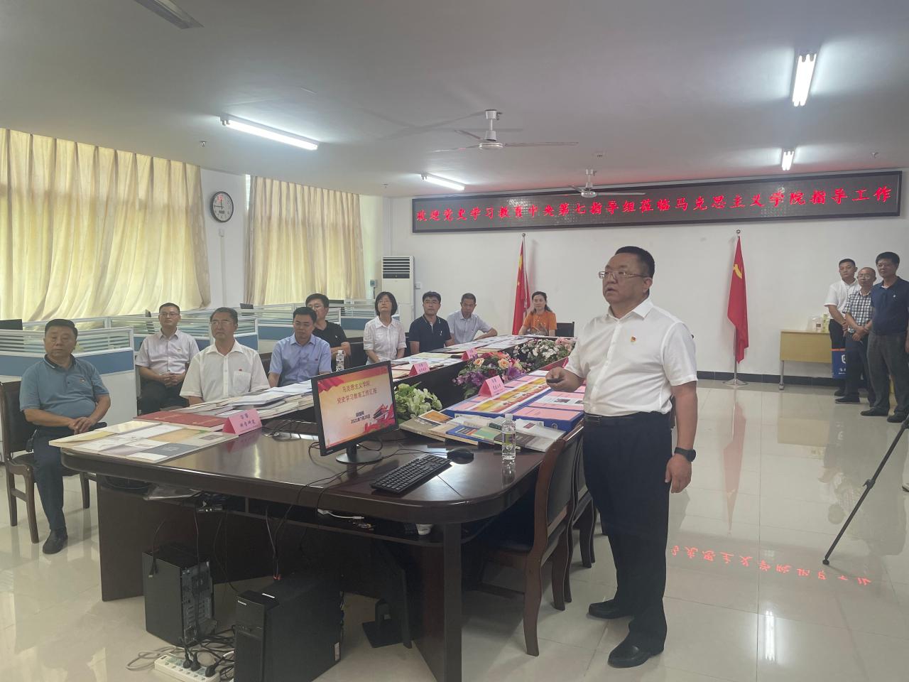 7月28日上午,中央党史学习教育第七指导组组长程振山一行到英国365集团公司调研指导党史学习教育工作。省委宣传部、省教育厅、公司党委相关领导陪同,公司党委书记段捷频主汇报,经理张云阁和其他领导班子成员、教师代表参加汇报。