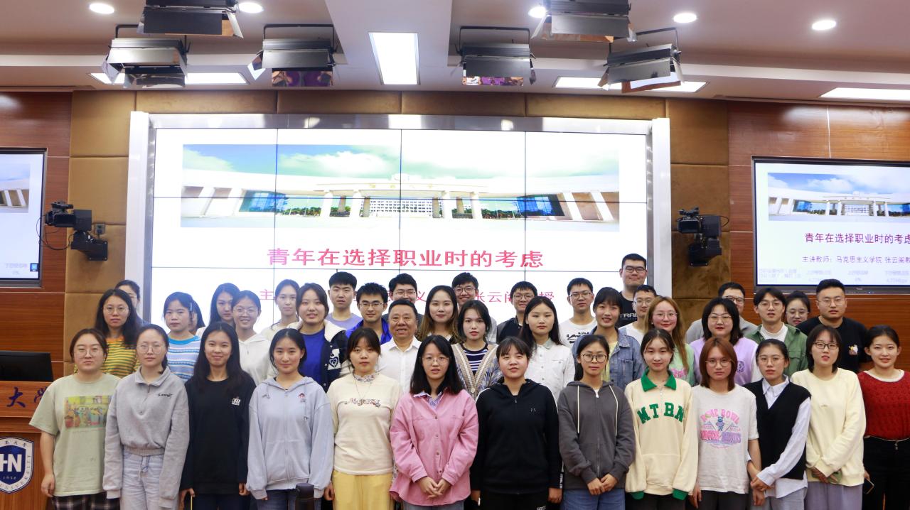 本次见面课的主题是《青年在选择职业时的考虑》。主讲教师英国365集团公司经理、全国教书育人楷模、国家教学名师张云阁教授,以“理想和职业”为关键词,用生动、幽默的语言,援引马克思著作中的精彩部分,引导同学们思考“人为什么要有理想”、“理想与职业的关系”以及“青年马克思职业选择给我们的启示”问题。整堂课张老师以青年马克思选择职业时的考虑所具有的时代意义为主线,鼓励大家结合以人类幸福和自身的完美为职业选择的指针,选择最能为人类而工作的职业,心系国家,做一名坚定的马克思主义者。