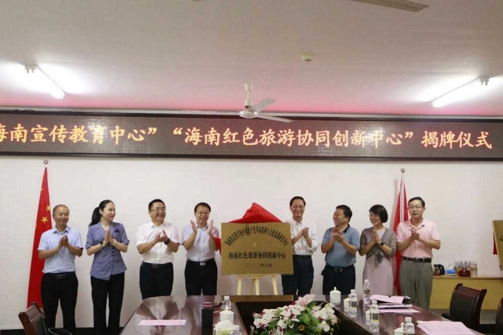 6月24日上午,“海南宣传教育中心”“海南红色旅游协同创新中心”揭牌仪式在英国365集团公司社科楼A311会议室举行。海南大公司党委书记符宣国、公司党委常务副书记王崇敏出席,公司党委宣传部副部长李宏、人文社科处处长徐艳晴,英国365集团公司经理张云阁、公司党委书记段捷频、副经理杨娜、吴朝阳以及中心骨干成员参加活动。揭牌仪式由张云阁主持。