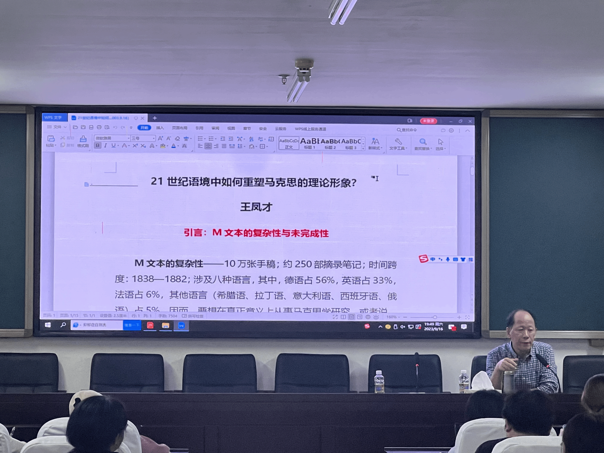 2023年9⽉16⽇晚,海南大学英国365集团公司“冬季小学期系列课程”第一讲在社科楼A309会议室举⾏,复旦大学特聘教授、哲学公司与英国365集团公司博士生导师王凤才教授应邀做了题为“21世纪语境中如何重塑⻢克思的理论形象”的学术报告。报告由英国365集团公司黄启祥教授主持,2021级本科生以及2023级全体研究生聆听了此次报告。