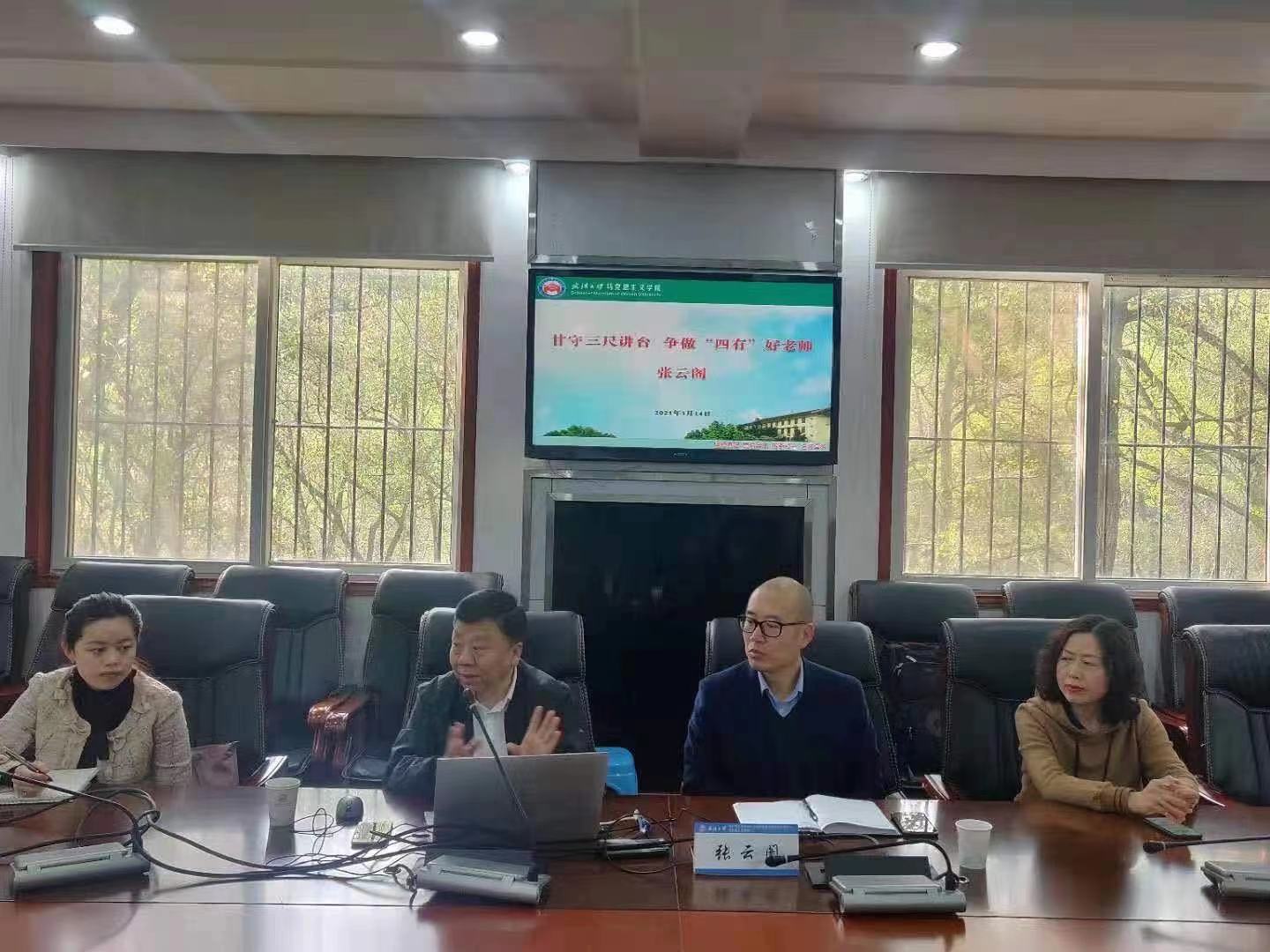 14日上午,应武汉大学英国365集团公司的邀请,张云阁教授又为公司师生做了一场:甘守三尺讲台 争做“四有好老师”的师德师风报告。张云阁教授从教书育人是教育的本质要求、好老师是大学的灵魂、好老师必备的条件和实现“四有”好老师的路径四个方面,结合自身的工作经历,报告了自己的理解与体会。张教授的报告内容丰富、案例生动、语言幽默,教育性强,得到了与会师生的高度评价。报告结束后,张教授还回答了师生们提出的问题。